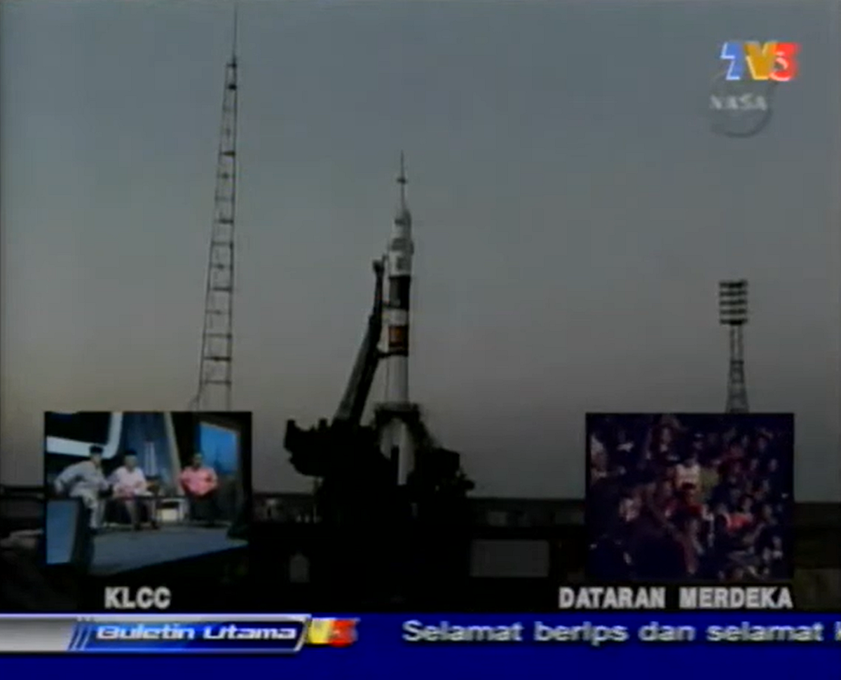 At 21:21 Malaysian time (19:20 Kazakhstan time) on 10 October 2007, Soyuz TMA-11 lifted off from Baikonur. Malaysians watched via live broadcast by TV3, with support from Astro and Celcom. Crowds gathered at Dataran Merdeka, while VVIPs including the Prime Minister and Deputy Prime Minister watched from KLCC. MRSM students from Muar (Dr. Sheikh Muszaphar’s former secondary school) and other schools in KLCC joined the live viewing.